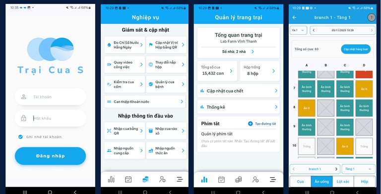 Hệ thống quản lý dữ liệu cho phép truy vết thông tin đến từng cá thể cua. Khách hàng dễ dàng kiểm tra toàn bộ hành trình từ trại nuôi đến thành phẩm, đảm bảo sự an tâm tuyệt đối về xuất xứ và quy trình canh tác