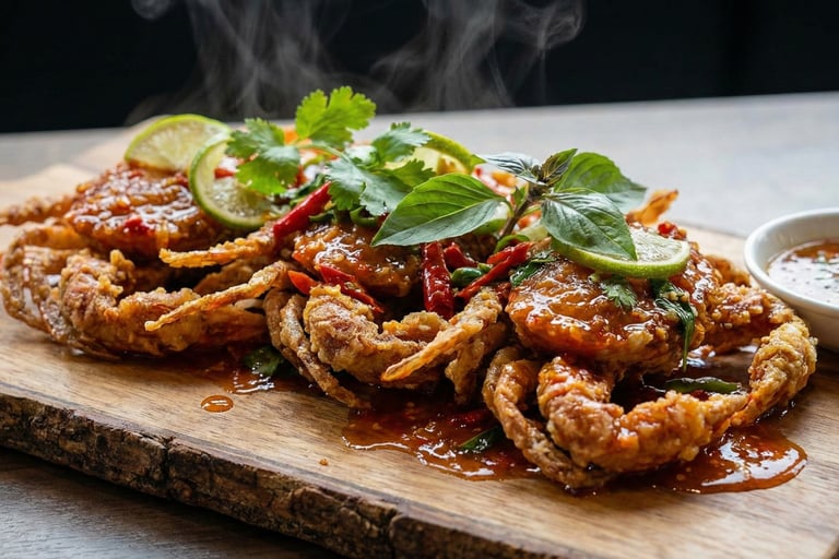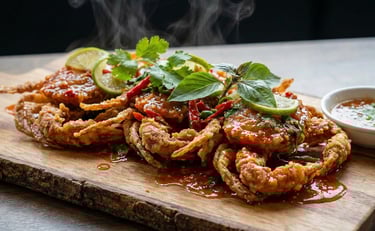 A plate of Salted Egg Yolk Soft-Shell Crab