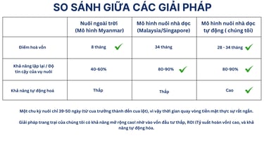 Mô hình này giúp nâng tỷ lệ sống lên khoảng 75–80%, nhưng vẫn là mô hình bán thủ công, phù hợp quy mô nhỏ hoặc thử nghiệm, không tối ưu cho sản xuất lớn.