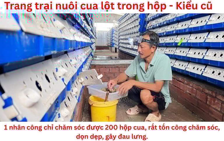 1 nhân công chỉ quản lý được ~200 hộp cua